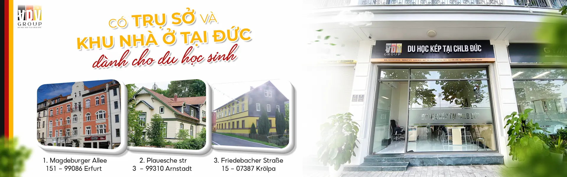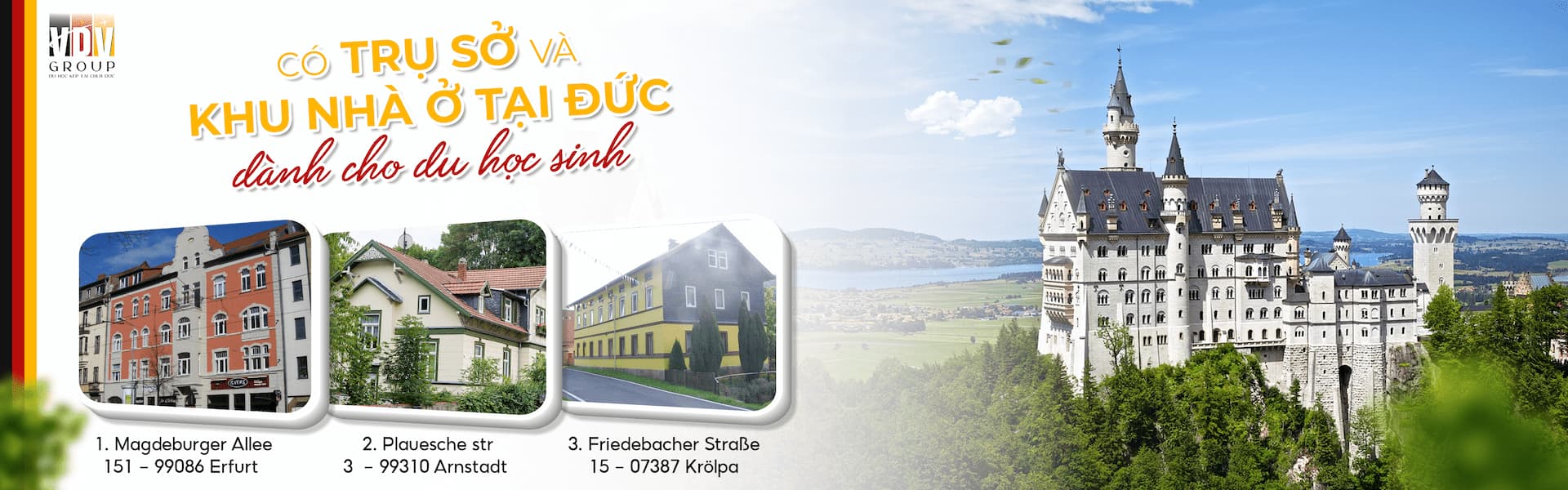 VDV Group có trụ sở chính tại Erfurt cùng với hệ thống BĐS nhà ở cho thuê do chính công ty sở hữu, học viên của chúng tôi không còn lo vấn nạn “đem con bỏ chợ”, chúng tôi sẽ đồng hành trên mỗi chặng đường phát triển của học viên trên đất nước Đức. Không những thế, VDV Group đã có quan hệ hợp tác với rất nhiều các doanh nghiệp lớn tại Đức, chắc chắn 100% cho đầu ra của học viên sau khi tốt nghiệp.