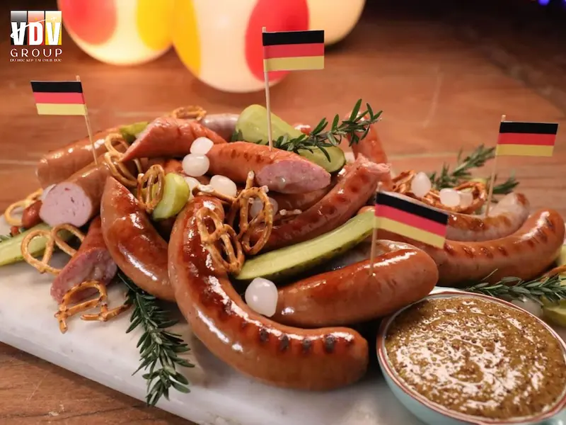 Bratwurst, một loại xúc xích, cũng là món ăn làm nên tên tuổi của nước Đức. Ngoài ra, các loại rau như bắp cải, củ cải, khoai tây và dưa cải bắp cũng là những ngôi sao của ẩm thực Đức, chúng được kết hợp trong các bữa ăn tại quốc gia này.