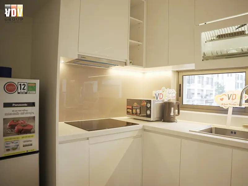 + Phòng ăn trang bị bếp từ, nồi cơm điện, tủ lạnh, lò vi sóng,…